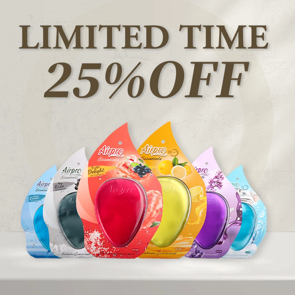Transform your journey with Airpro Essentials. Our car air fresheners offer long-lasting fragrance in a variety of variants, including Arctic Ocean, Crisp Linen, Dreamy Lavender, Frutti Delight, Fresh Lemon, and New Ride. Customize your scent experience with ease. Elevate your drives with captivating scents and make each journey unforgettable.